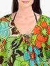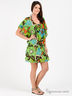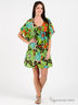 Детали: v-образный вырез на завязке, ворот украшен пайетками, короткие широкие рукава, заниженная талия посажена на резинку, яркий оригинальный принт