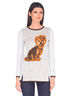 Туника трикотажная выполнена жаккардовой вязкой. Изделие средней плотности. На полочке принт в виде Йорка. Модель свободного силуэта, боковые швы смещены вперёд и имеют разрезы.