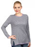 Туника выполнена 2-цветной фактурной вязкой в виде "шашечек". За счет модельного кроя имеет легкий клёш, при этом боковые швы смещены вперёд к полочке. Боковые швы имеют небольшие разрезы. Рукав длинный. Вырез горловины в виде неглубокой "лодочки". В состав изделия входит пряжа мериноса, за счет чего изделие теплое и мягкое.