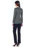 Туника выполнена 2-цветной фактурной вязкой в виде "шашечек". За счет модельного кроя имеет легкий клёш, при этом боковые швы смещены вперёд к полочке. Боковые швы имеют небольшие разрезы. Рукав длинный. Вырез горловины в виде неглубокой "лодочки". В состав изделия входит пряжа мериноса, за счет чего изделие теплое и мягкое.
