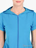 Детали: капюшон, застежка на молнию на полочке, короткий рукав посажен на манжету, отрезной пояс с продетым регулирующим шнурком