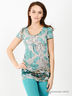 Стильная туника из тонкого, эластичного вискозного трикотажа. Округлый вырез горловины. Короткие рукава. Завышенная линия талии. На полочке заложены небольшие встречные складки.
