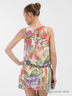 Стильная туника без рукавов. Модель оформлена ярким рисунком. Линия талии на резинке. Прекрасный вариант для летнего гардероба.