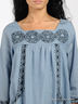 Легкая хлопковая блузка свободного покроя. Вырез каре. Рукава 3/4. Два втачных кармана спереди. Туника декорирована вышивкой. Хлопковая подкладка.