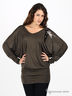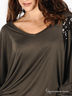 Очень мягкая, и нежная туника из трикотажной тонкой ткани. Округлый вырез горловины на трикотажной ленте. Длинный цельнокроеный рукав "летучая мышь" и низ изделия на длинной манжете. Изделие декорировано пайетками в виде ласточки.