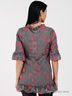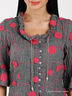 Детали: круглый вырез горловины, небольшая сборка по вырезу горловины с завязкой на кулиске, короткие рукава с небольшой манжетой - рюшей, оригинальная отделка вышивкой по хлопку, имитация застежка на пуговицах в качестве отделки, подол - рюша.