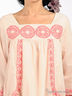Легкая хлопковая блузка свободного покроя. Вырез каре. Рукава 3/4. Два втачных кармана спереди. Туника декорирована вышивкой. Хлопковая подкладка.