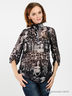 Элегантная туника из полупрозрачного материала. Воротник стойка с оборкой, застежка на планку с пуговицами, рукава с манжетами застегиваются на пуговицы, полочка декорирована блестящими стразами. Фигурный низ присборен по бокам. Отличный вариант на каждый день!