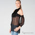 Модель очень оригинального кроя. Рукава отрезные, на резинке. Кокетка украшенна атласными лентами, собранными в бантовые складки. Лиф непрозрачный, из двойного материала.