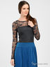 Полупрозрачный гипюровый лонгслив с округлым вырезом горловины и длинным рукавом.