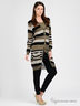 Стильный твинсет состоит из футболки и кардигана. Футболка с круглым вырезом и коротким рукавом прямого кроя. Кардиган с V-образным вырезом и застежкой на пуговицы, манжеты и из изделия из рибаны, декорирован принтом - полоска. Отличный вариант на каждый день.