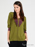 Стильный твинсет состоит из топа и кардигана. Топ с V-образным вырезом прямого кроя. Кардиган с круглым вырезом и рукавом 3/4, застегивается на пуговицы. Декорирован трикотажными оборками и контрастными полосами. Отличный вариант на каждый день.