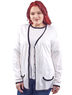 Детали: футболка: короткий рукав круглый вырез; жакет: длинный рукав, V-образный вырез, застежка на пуговицы