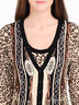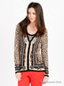 Стильный твинсет состоит из кардигана и топа, украшенных рисунком.