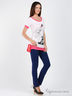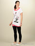 Детали: эффект двойки; круглый вырез; короткий рукав; декорирована аппликациями и стразами; низ изделия дополнен атласной лентой