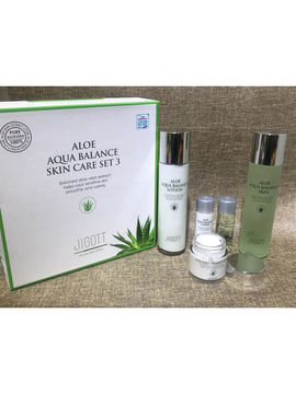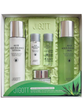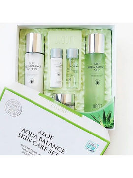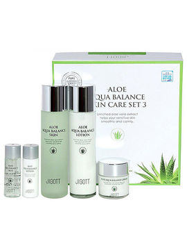 Набор для лица 3 предмета + 2 мини-версии ALOE AQUA BALANCE SKIN CARE SET3 с алоэ (тонер, эмульсия, крем), JIGOTT