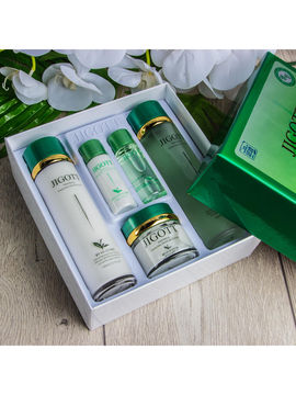 Подарочный набор WELL-BEING GREENTEA 3SET с экстрактом зеленого чая (тонер/эмульсия/крем), JIGOTT