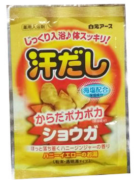 Соль для ванны согревающая на основе углекислого газа с экстрактами перца, имбиря, моркови, морских водорослей Asedashi, 25 г*12, Hakugen Earth