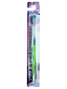 Зубная щетка для улучшенного очищения лунки зуба и межзубного пространства со спиральными и утончёнными ворсинками, средней жёсткости, EBISU