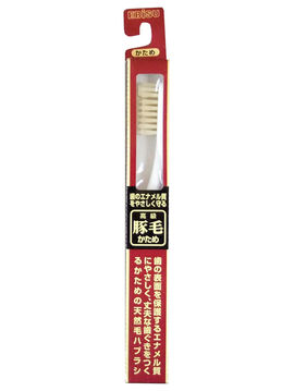 Зубная щетка из натурального свиного ворса с W-образным срезом, жёсткая, EBISU