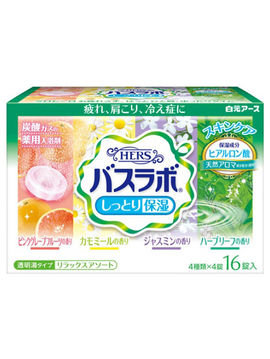 Соль для ванны увлажняющая с восстанавливающим эффектом на основе углекислого газа с гиалуроновой кислотой с ароматами жасмина, ромашки, летнего луга, розового грейпфрута HERS Bath Labo, 45 г*16, Hakugen Earth