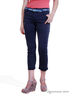 Укороченные брюки с 5 карманами. Пояс со шлевками, застежка на молнию и пуговицу. Ремень из искусственной кожи в комплекте.