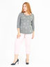 Укороченные брюки с 5 карманами. Низ с разрезами, вышивкой и пайетками. Длина по внутреннему шву ок.60 см, ширина по низу ок.38 см. Параметры фотомодели: рост 172 см, российский размер 48.
