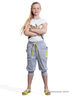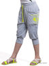 Укороченные брюки в спортивном стиле из меланжевого трикотажа. Широкий пояс на яркой кулиске, большие накладные карманы спереди. Яркий принт на 1 кармане. Широкие манжеты по низу брючин. Размер по росту в см.