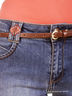 Укороченные джинсы с 5 карманами. Пояс со шлевками, застежка на молнию и пуговицу. Заклепки на карманах.