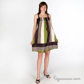 Платье V-mum женское, цвет кремовый / зеленый / коричневый