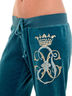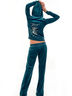 Куртка на молнии, имеет капюшон и два кармана, брюки прямого кроя. Костюм украшен оригинальным принтом и пайетками.