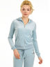 Домашний костюм состоит из жакета и брюк, из пушистого, мягкого материала. Жакет имеет два кармана и украшен аппликацией и стразами на спинке и рукаве. С капюшоном и сплошной застежкой на молнию. Брюки прямого кроя с поясом в рубчик и завязочкой для регулирования ширины. Украшены аппликацией и стразами.