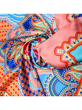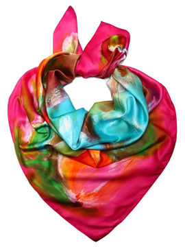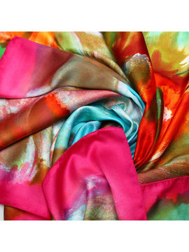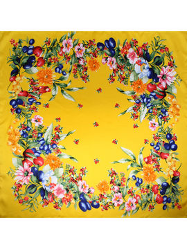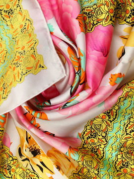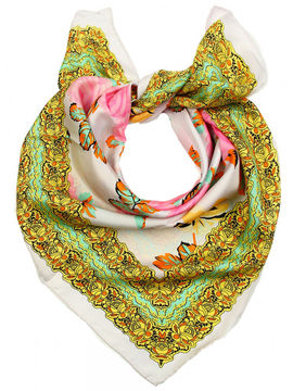 Платок, 90х90 см Venera, цвет оранжевый, желтый, зеленый, розовый