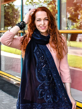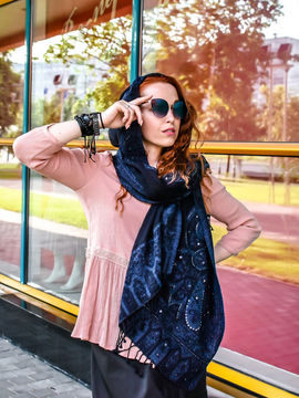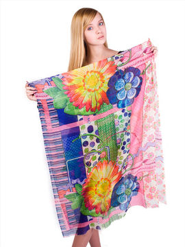 Палантин, 90*180 см Venera, цвет оранжевый, красный, голубой