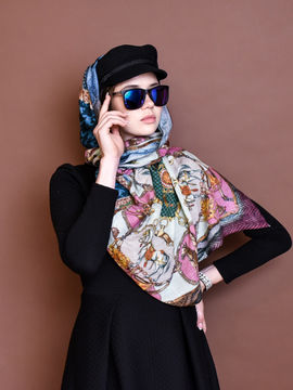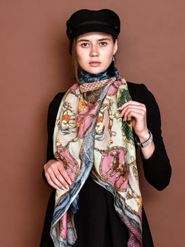 Платок, 90*90 см Venera, цвет коричневый, цветной