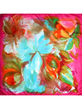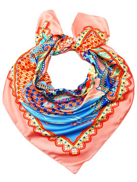 Платок, 53*53 см Venera, цвет оранжевый, белый, розовый, красный