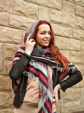 Палантин, 70*180 см Venera, цвет серый, белый, розовый