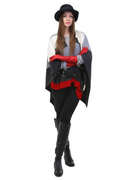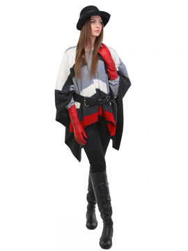 Пончо, 105*140 см Venera, цвет серый, белый, красный