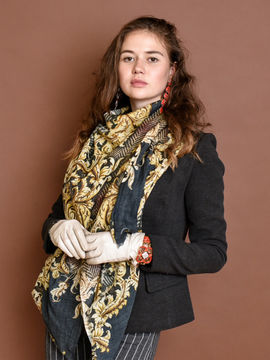 Платок, 90*90 см Venera, цвет коричневый, стальной