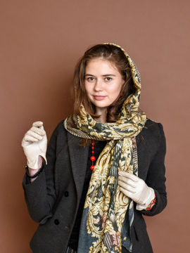 Платок, 90х90 см Venera, цвет коричневый, цветной