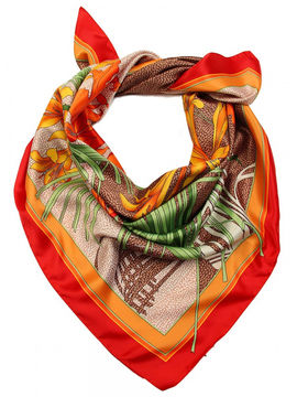 Платок, 90*90 см Venera, цвет коралловый, оранжевый, белый