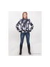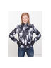 Оригинальная укороченная ветровка из гладкой ткани с оригинальным принтом. Воротник- стойка. Длинные рукава с манжетами на резинке. В районе локтя вставка, собранная на резинке. Два прорезных кармана.