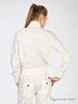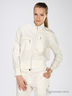 Легкая ветровка из 100% натурального хлопка нежного молочного цвета. Воротник стойка. Застегивается на серебристую молнию. Длинные рукава реглан. Манжеты и низ изделия посажены на широкую трикотажную резинку. На полочке два накладных кармана на молнии.