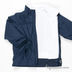 Двусторонняя ветровка для девочки. Воротник стойка, длинные рукава, застежка на молнию, спереди два накладных кармана на резинке, талия подчеркнута втачным поясом.