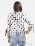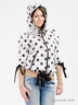 Прекрасная укороченная ветровка с длинными рукавами и капюшоном. Модель имеет удобную центральную застежку на молнию. Декорировано изделие контрастным принтом в горох и втачными карманами. Отличный вариант для практичных женщин.