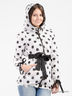 Креативная и модная ветровка для стильных, уверенных женщин. Модель с капюшоном и застежкой на молнию. Дополнено изделие втачными карманами и контрастным поясом на талии. Необычный красочный принт смотрится восхитительно.