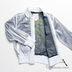 Модель прямого кроя с воротником-стойкой застегивается на молнию. Ворот, манжеты и низ изделия - трикотажные резинки. Два передних кармана на кнопке, один нагрудный карман на молнии. Сетчатый подклад с аппликацией. Декоративная аппликация на полочке.
