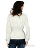 Детали: отложной ворот-стойка, застежка на молнию, два передних кармана, один нагрудный карман, вставлена широкая резинка на уровне талии, манжеты декорированы оборками и хлястиками