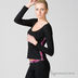 Трикотажная футболка с круглым вырезом горловины и длинными рукавами. Боковой шов футболки украшен тесьмой с логотипом марки.