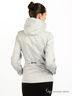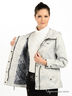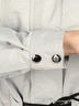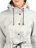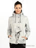 Детали: воротник втачной - стойка с капюшоном, застежка на молнии и на металлической кнопке застегивается до основания шеи, небольшие листочки на груди в качестве отделки, боковые врезные карманы с листочком на металлической кнопке, по поясу вшитый шнурок позволяет придать приталенный силуэт, рукав длинный двухкроеный посажен на небольшую манжету с застежкой на металлических кнопках, рукав у манжеты присборен.